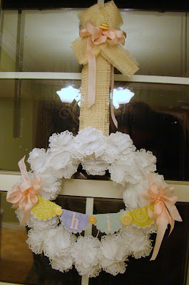 Kristin's wreath is made with individual flowers from die cut doiles.