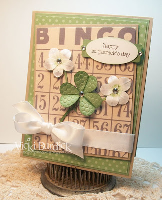 As luck would have it today's challenge falls on St. Patrick's Day! Ah, the luck of the Irish, or so some say. For this weeks challenge make a card or tag with some sort of bingo card on it, and use the color green somewhere on the project. With some luck, you just might have the winning one! Please take inspiration from our fabulous Design Team and gracious Guest Designer, Amy Lazzell, for this week. Everyone has come up with wonderful designs.